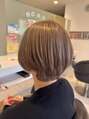 ショートボブ x グレージュブリーチ1回後に明るめのグレージュでキレイな透明感を。