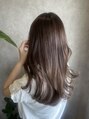 柔らかなココアブラウンカラーで秋っぽさを。まだまだ暑いのでヘアカラーから秋を取り入れてみるのオススメです!大人っぽい流しバングとレイヤーカットとの相性も抜群です