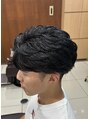 短めのセンターパートをベースに軽い毛流れのニュアンスパーマをかけました^_^乾かしただけでも毛流れしやすく、オイルをつけるだけでこの毛流れや束の質感も出る為パーマ初心者の方にもオススメできるパーマです^_^