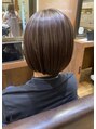 ストレートタッチのシンプルボブに、細かく入れたハイライトで立体感をプラス。自然な動きと透明感が出るので、重く見えがちなストレートボブも軽やかな印象に仕上がります。