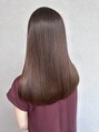赤みを抑えた柔らかいブラウンで、肌なじみの良いストレートスタイル。毛先まで潤いのある艶感で、上質さと透明感を両立しました。【縮毛矯正/髪質改善/トリートメント/メテオ/カラー/メテオストレート/ボブ/切りっぱなしボブ/切りっぱなし/水戸/赤塚】