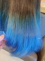 中間~毛先のブリーチ毛部分に、鮮やかなブルーを。