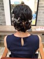 インナーカラーをアクセントに活かした低めのアップスタイルです