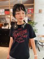 癖毛を生かしてウルフショートスタイル。ダークなカラーもお似合いです♪青が混ざっているブルーブラックにグレーも少し。透明感やあるダークカラーです