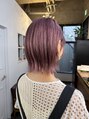 ツヤ感ピンクラベンダーとトレンドの外はねボブでこなれ感UP。甘すぎないカラーで大人っぽさと可愛さを両立できる人気スタイル。簡単スタイリングも嬉しいポイント◎