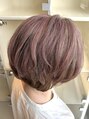 白髪を活かした"暗く染めないオシャレな白髪染め"。白髪だからこそできる柔らかい発色のクリアベージュカラー。アクセントにピンクのハイライトを入れています。