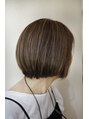 ショートボブの面の綺麗さを活かし、ハイライトカラーで仕上げました!ハイライトにより立体感と奥行きが生まれ、かき上げた時など髪が動く時にもより印象的に見えます!白髪が伸びても目立ちにくいので、おすすめです☆