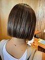 パツっとボブに細いハイライトを全体に入れて軽い印象に。どこで分けても素敵な印象に。