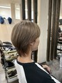 センターパートにワンブリーチ、ワンカラーでミルクティーベージュに!