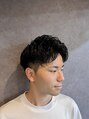 サイドとバックはスッキリと刈り上げて、トップは扱いやすいように軽くさせて頂きました!ドライヤーで前髪を上げてからジェルを付けるだけで、パーマ風アップバングへ!癖毛を活かしたスタイルなので、癖毛の方におススメです!