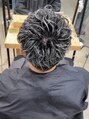 渋谷/スパイキーアフロ/チャコールグレー/ショートセンターパート/サーフフェザー/プードルパーマ