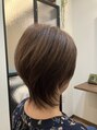 首元をすっきり見せるくびれシルエットで、洗練された印象に仕上げました。トップに動きをつけることで軽やかさと柔らかさが加わり、大人世代にも似合うショートスタイルです。お手入れも簡単で、毎日のスタイリングが楽しくなります。