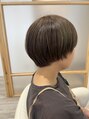 毛量をすっきりしたいというご要望で、サイドと襟足の内側を少し刈り上げて、かぶせています。表面は切り込みすぎず、丸みを残して仕上げています。