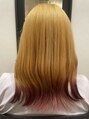 ベースのカラーをベージュ系の明るめで染めて、裾を濃いめのピンクを入れました。