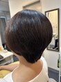 レイヤーを入れてトップにふんわりとした丸みを出し、えりあし部分はキュッとボリュームを絞った、頭の形が綺麗に見えるショートボブスタイルです。 年齢や骨格を問わずに似合い、女性らしい上品な雰囲気で、お手入れもしやすく、人気のヘアスタイルです。