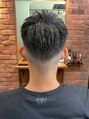 トップに動きをつけたスパイキーショートと、サイドからバックにかけてのフェードでスッキリとした印象に。清潔感がありながらもワイルドさを引き出すスタイルです。スタイリングも簡単です