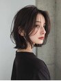 毛先が自然に外ハネするくびれボブで、抜け感と小顔効果を両立。赤みを抑えたダークグレージュが透明感と大人っぽさを引き立てます。ラフにかき上げるだけでキマる、今っぽボブスタイル。