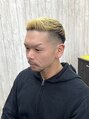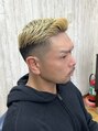 男らしさと洗練さを兼ね備えたスタイルです。サイドから後ろにかけてはスッキリとしたフェードで清潔感を出し、トップはしっかりブリーチした明るめカラーをプラス。存在感のあるコントラストが、スタイリッシュで都会的な印象を与えます。