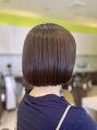 ワンレングスボブ。ほどよく毛量を調整して、まとまりのあるボブにしました。髪質改善ストレートもしているので、コンパクトにまとまります。