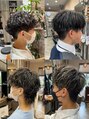 ベースはマッシュ。サイドとバックは刈り上げないくらいの短さに設定し、柔らかい雰囲気を残しました。パーマは強すぎず弱すぎない、ちょうどいいスパイラル感。ナチュラルに動きが出て、スタイリングも簡単。パーマ初心者の方にも挑戦しやすいです。