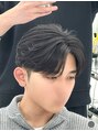 ブルーブラック/フェザーパーマ/刈り上げセンターパート/メンズ
