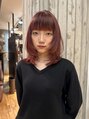 ボブカラーボルドー切りっぱなしボブセンターパートハイトーン/ホットペッパービューティー