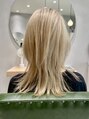 レイヤーを入れた軽いセミディはハイトーンのアッシュブロンドで外国人風に!