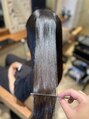 縮毛矯正でのダメージが気になるお客様にトリートメント+カットをしたスタイルです。毛先にブリーチ部分が残っておりそこを中心に引っ掛かりが出ていたのでたっぷりの栄養分で補修しました。長さをほとんど切らずにキレイなツヤ髪が出来上がりました。
