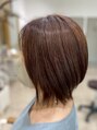 レイヤーをいれることにより動きがあるスタイルに。ストレートアイロンでスタイリングしてあります。色味はミントカラー赤味をおさえてくれるカラーです。