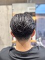 サイドはツーブロック、襟足は刈り上げでトップの長さを長めにしたスタイル。センターで分けて後ろへ流れるようにカットさせて頂きました。サラサラで柔らかい髪質でしたので、アイロンでブローをしてバームをつけてセットしました♪