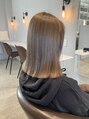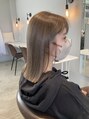 ツヤ感たっぷりのミルクティーベージュで柔らかな印象に。ストレートでも巻いても可愛い、万能ロブ スタイルです。