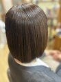 少し長めバランスのボブ。髪の毛をくくったり、下ろしたりライフスタイルに合わせやすいスタイルです。