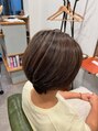 脱白髪染カラー、白髪ばかしのハイライトを入れています。カットはショートボブスタイルで動きの出るスタイルに