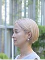 ホワイトブロンドのミニボブスタイル。コンパクトなシルエットのショートボブなのでブロンドの膨張色を感じさせず品のあるヘアスタイルになります。ハイトーン特有のダメージ対策としても◎