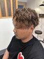 センターパートに縦落ちのスパイラルパーマをかけてナチュラルなライトブラウンでカラーしました!髪色が明るいとパーマのウェーブ感がより映えてかっこいいですよ!メッシュカラーも得意なので気軽にご相談ください!
