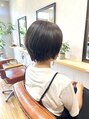 乾かすだけで形が決まりやすいひし形ショートボブに、表面のレイヤー部分をストレートアイロンで丸みをつけてさらにメリハリのあるスタイルに♪ 倉敷/白楽町/白髪ぼかし/ヘッドスパ/髪質改善/イルミナカラー/酸熱トリートメント/ショート/ミディアム/ボブ/
