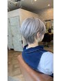 ホワイトグレー ショートヘア ダブルカラー ブリーチカラー グレージュ