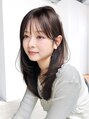 ミディアムロングおくれ毛暗めカラーくびれミディ_ba561471