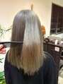 ダブルカラー*ホワイトブロンド*ミディアムストレート20代