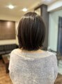 切りっぱなしボブから伸ばしていくレイヤーボブに。顔周りを切り込んでメリハリを。カラーはオリーブベージュで柔らかさを。
