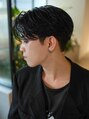 フェザーパーマブルーブラック刈り上げセンターパート_F1022
