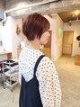 丸さを残した前下がりショートにカットしてます、首元はタイトに、うしろは丸さ(ボリューム)をだすようにカットしてます。