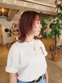 顔回りは頬骨位から短くカットして、うしろは襟足の髪を長めに、段はしっかりつけてカットしてますカラーはアカ×ムラサキストレートアイロンで襟足部分の髪は外ハネに、顔回りの髪は軽く整えてあげてスタイリングするとよいかと☆