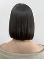 うねりや広がりを自然に抑える柔らかな縮毛矯正で、毛先までしっとりまとまる艶ボブに。深みのあるグレージュカラーが肌なじみ良く、大人の抜け感と透明感を演出。毎日のスタイリングも簡単で、指通りなめらかな上品シルエットに仕上がります。