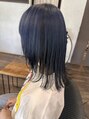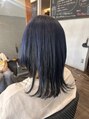 前回のアンブレラカラーにしてたブリーチ部分が綺麗に抜けていたので濃いめのブルーをのせました。