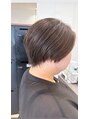 【ショートは小顔カットが全て。気に入って頂いたスタイルは、ブックマークをしてご提示ください】ベースをブラントカットでシルエットを作り、質感調整で柔らかさを出しました。丸いひし形シルエットはショートの王道です、人気なコンパクトショートスタイル
