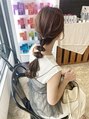 メニューはカット、カラー、トリートメント。カラーはイルミナカラーを使用したベージュ系のお色味に、トリートメントはオージュア"クエンチモイスト"を使用しパサつきを抑えた質感にさせていただきました。また、お仕上げに可愛くアレンジを。