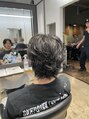 前髪からサイドはニュアンスパーマで流れやすく、後ろはサーフカール風に動きを出してこなれた大人スタイル
