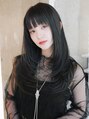 ロング暗めカラー韓国ヘア顔周りレイヤー_F20186