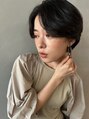 前下がりのセンターパートスタイル。前髪は少し長めに残してニュアンスパーマで毛流れを作ることで、ショートでも女性らしさの残るヘアスタイルに。ドライして、バームやオイルをつけるだけなので毎朝のスタイリングも簡単です。